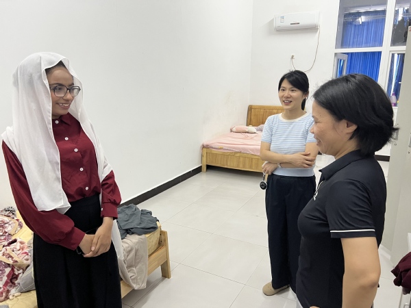 7月15日下午,国际学院院长高兰英带队开展暑假前留学生公寓安全检查,副院长邓妍祯、张敏陪同。