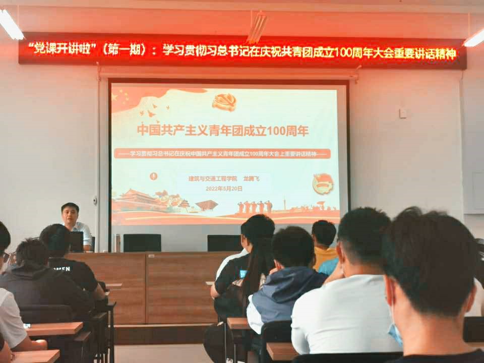 5月20日下午,建筑与交通工程学院党委在花江校区建交大楼401报告厅开展第一期“党课开讲啦”主题党日活动。学院党委副书记龙腾飞以《学习贯彻习近平总书记在庆祝中国共产主义青年团成立100周年大会上的重要讲话精神》为主题,为100余名师生党员讲授了专题党课。
