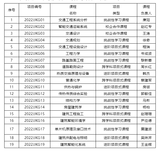 建筑与交通工程学院课程建设教学改革立项信息一览表