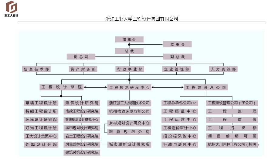 浙江工业大学工程设计集团成立于1987年,是一家以综合性工科大学雄厚师资及相关学科为依托,以较高的科研水平和先进的技术装备为优势,集设计、建设、科研三位一体的大型工程咨询企业;集团现有专职工程技术人员1500余名,其中具有中、高级职称的工程师五百余名,国家一级注册建筑师、国家一级注册结构工程师等各类注册人员三百余名,并拥有国家、省级青年优秀建筑师、工程勘察设计大师及杭州市青年优秀建筑师等高层次人才。