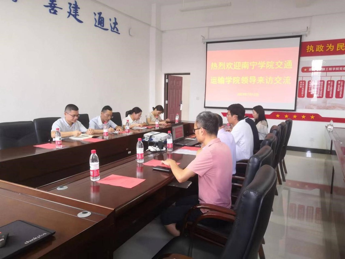 7月12日下午,南宁学院交通运输工程学院副院长范毅一行四人来我院调研交流。我院院长王涛,副院长周旦与客人在花江校区建交楼A412会议室进行了交流座谈。南宁学院交通运输工程学院杨涛、鲍春、李仁焕,以及我院廉冠、岑成贤、徐奇、程瑞等参加了座谈会。