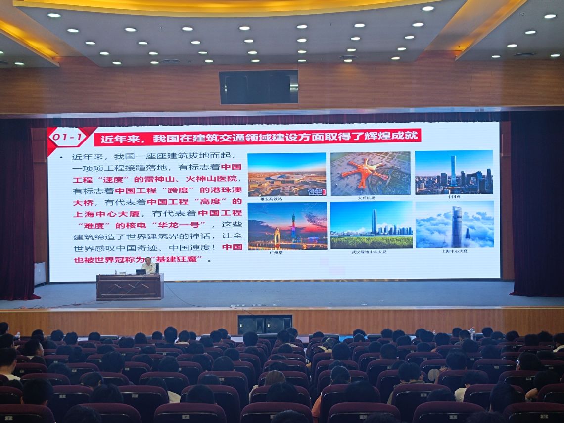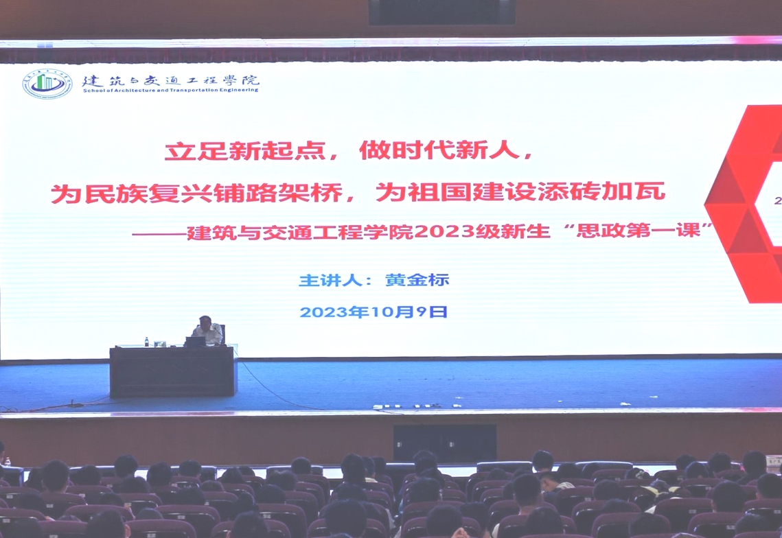 10月9日晚,建筑与交通工程学院党委书记黄金标以“立足新起点,做时代新人,为民族复兴铺路架桥,为祖国建设添砖加瓦”为题,为2023级本科新生讲授“思政第一课”。