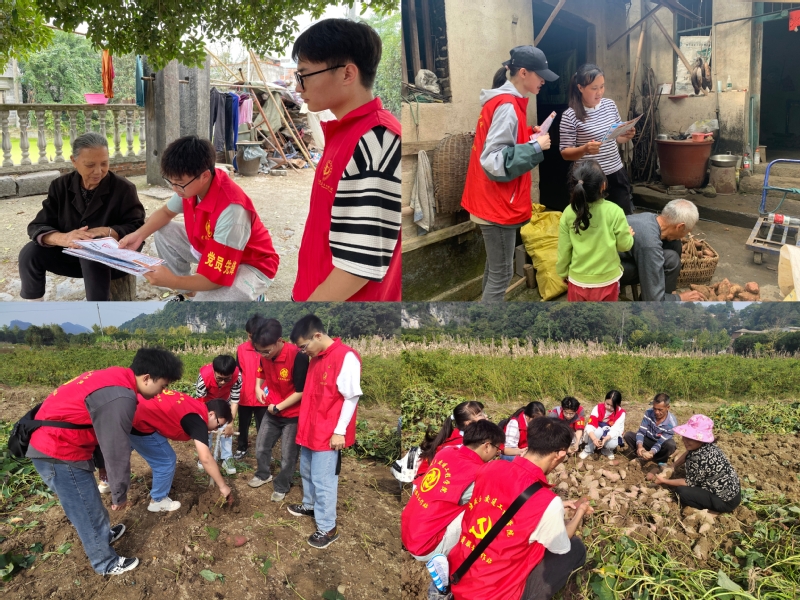 随后支部党员们身体力行,在村里工作人员的带领下,前往村中进行了“秋冬季节预防一氧化碳中毒”和“安全用电”宣传,并在了解当地农户的实际情况后开展志愿服务活动。师生党员在村民的指导下,采挖红薯,清理套袋,为水澄村村民提供了志愿帮助。