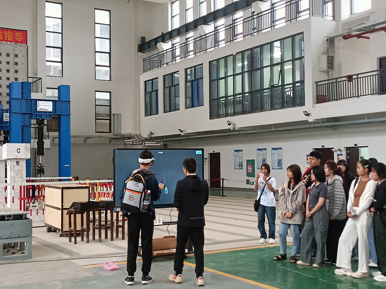 4月10日上午,泰国Bang Kapi School和Mathayom Watsing School等学校共35名学生交流团到我院智能建造实验中心进行研学交流活动,土木工程专业教师吴建建就实验中心反力墙建造及使用、大型工程结构多功能实验平台、高性能材料研发与测试平台、高大桥梁智能检测平台和装配式建筑数字孪生实验平台进行了讲解和演示,部分同学还亲身体验了MR虚拟仿真平台。
