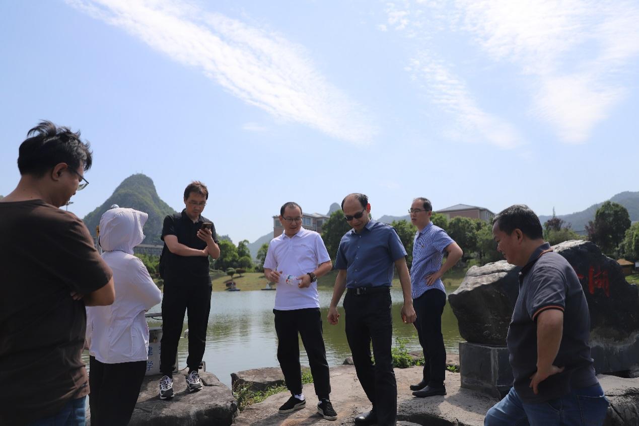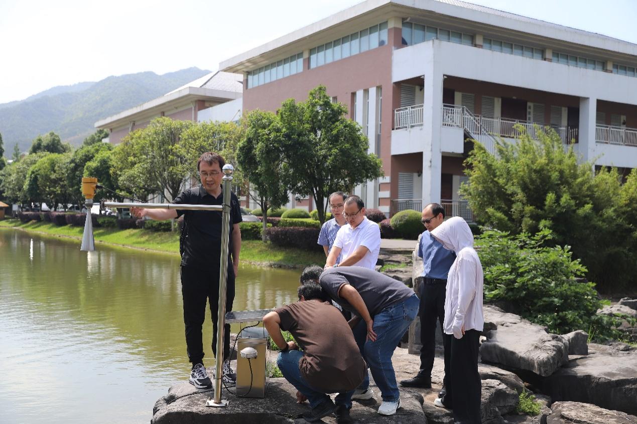 在周旦与陈国信书记的引领下,与会人员前往思贤湖等地实地考察了相关设备的布设情况。结合花江校区的地形地貌,双方就水位监测点的选址、信息的传输机制、预警发布等关键问题达成了共识,并共同拟定了花江校区洪水监测预警系统初步实施方案,为后期落实灾害预警能力建设奠定了基础。
