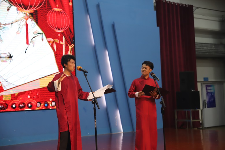 在薛成斌副书记和周旦副院长分别致词后,晚会正式开始。晚会主题新颖,节目都是专业学生自编自演,内容丰富多彩,有优雅的舞蹈,优美的歌声,令人捧腹的相声,形式多样,动静结合,精彩不断,为在场的师生献上了一场精彩的视觉盛宴。最后,全体演出人员和老师们及校友们在《相亲相爱一家人》的歌声中进行合影,晚会圆满落幕。