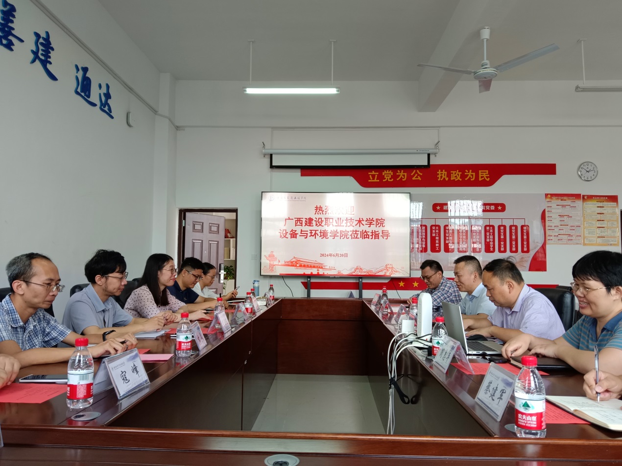 6月20日上午,广西建设职业技术学院设备与环境学院副院长陈秋涛(主持工作)一行7人到我院调研,就建环专业开办情况、 人才培养方案的制定、专业招生、就业情况以及行业人才需求现状等进行了深入交流。学院副院长郑文亨,建筑技术与设备工程系主任韩杰,副主任周志平、蔡建军以及卢崇参加会议。