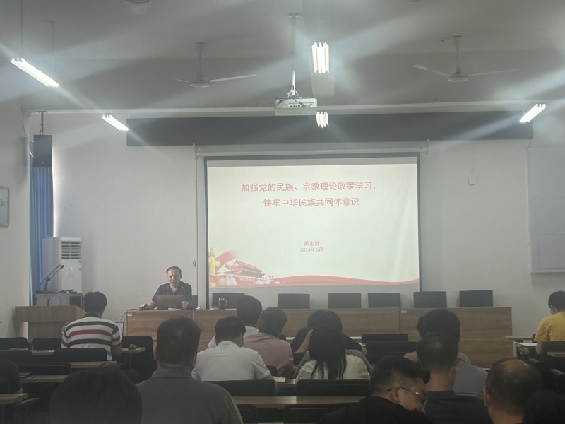 6月28日下午,我院于建交大楼401室开展宗教理论政策法规学习,全体教职工参加,会议由学院党委书记黄金标主持。