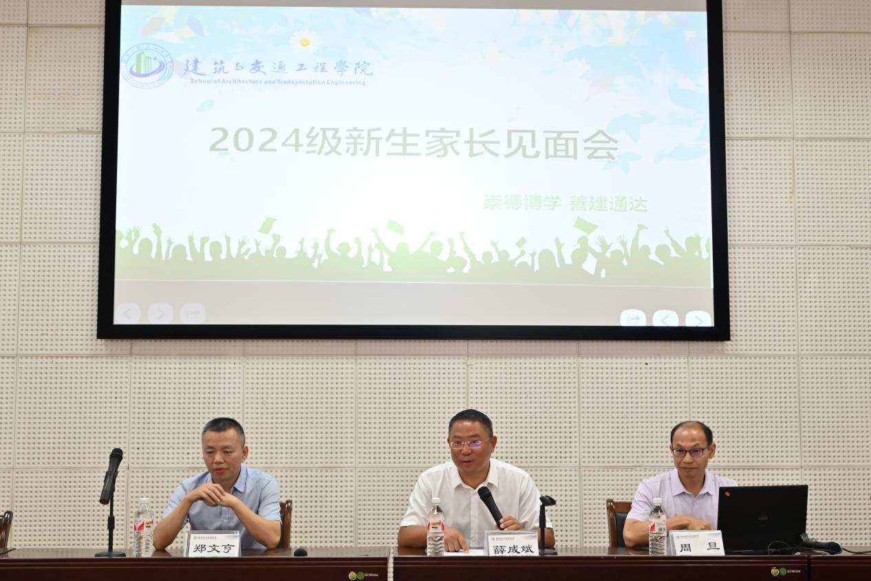 8月31日上午,建筑与交通工程学院在花江校区实训楼110报告厅召开2024级本科新生家长见面会。学院党委副书记薛成斌、副院长周旦、郑文亨、2024级班主任、辅导员、新生同学及家长参加会议,会议由学院党委副书记薛成斌主持。