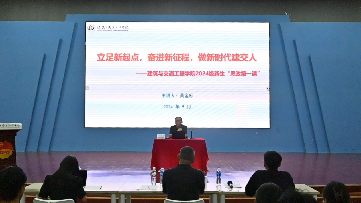 9月27日晚,学院党委书记黄金标以“立足新起点,奋进新征程,做新时代建交人”为主题,在花江校区红亮学生活动中心演艺厅为2024级本科新生讲授“思政第一课”。学院领导、新生辅导员、助理班主任及2024级全体新生参加活动。
