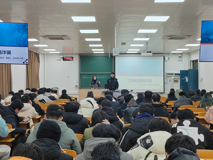 2024年12月29日下午,我院2022级在2教开展安全教育主题班会。首先,辅导员诸葛雪玉阐述了元旦佳节及寒假的具体放假安排,重点围绕假期的交通安全、财产安全、食品安全等多方面展开教育。其次,聚焦反诈宣传,邀请了杨政江警官进行现场宣讲,通过案例讲解和互动提问,提升学生防骗意识,传授识别诈骗技巧,强化信息安全防护。通过此次安全教育主题班会,同学们学到了丰富实用的安全知识和技能,进一步提升了自我安全防范意识。
