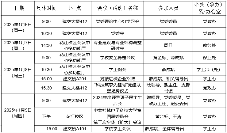 2024年秋季学期第18周建筑与交通工程学院重要会议(活动)安排