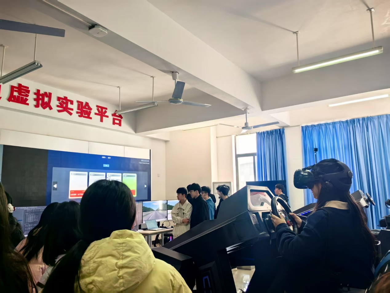 在参观活动中,同学们热情高涨,仔细观察各类设备平台,积极与讲解老师互动交流。部分同学还亲身体验了虚拟驾驶系统、自动驾驶车辆和MR虚拟仿真平台,通过实操进一步深化了对建筑与交通技术的认知。