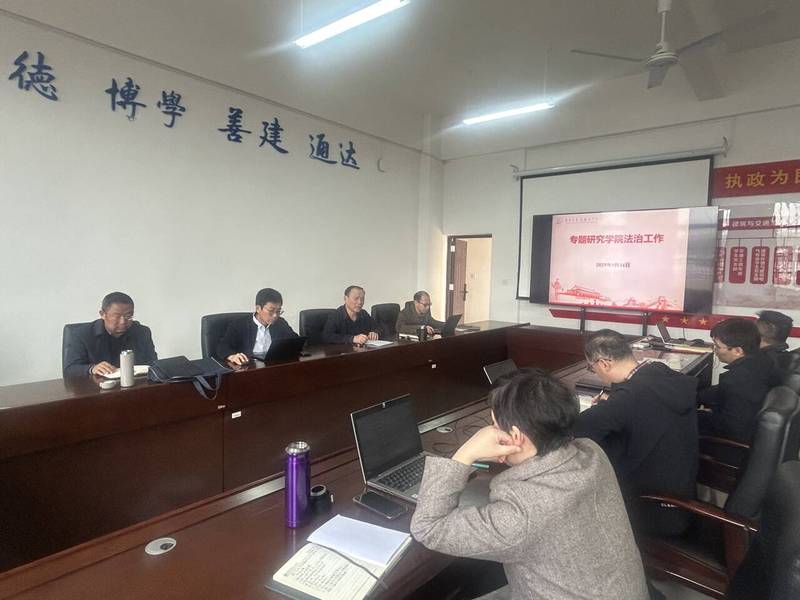 会上,讨论了学院2025年法治工作计划,并对2025年法治工作做了部署。黄金标书记表示:要进一步强化习近平法治思想的学习贯彻力度,将其作为学院政治理论学习的重要内容,通过组织专题讲座、研讨会等形式,引导广大师生深刻理解和把握其精髓要义,并将其融入到日常的教育教学和管理工作中。同时,要持续完善学院规章制度体系,以学校章程为统领,对现有规章制度进行全面梳理,有序推进制度的“废改立释”工作,确保学院的各项工作都有章可循、有法可依。
