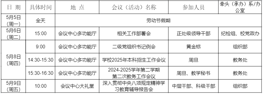 2025年春季学期第12周建筑与交通工程学院重要会议(活动)安排