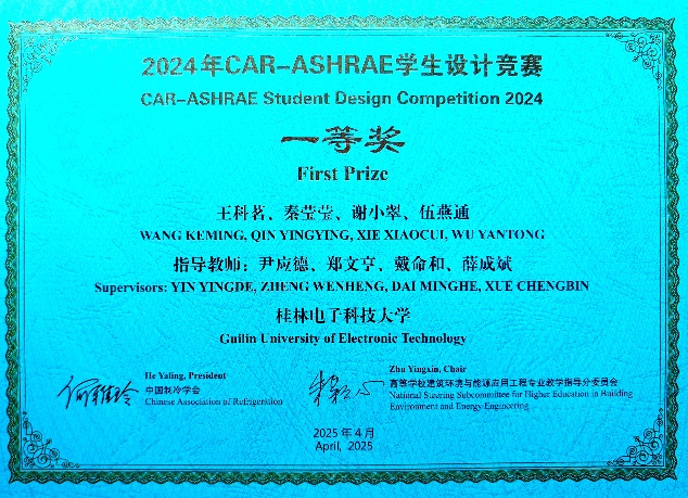 我校建环学子喜获2024年CAR-ASHRAE学生设计竞赛一等奖