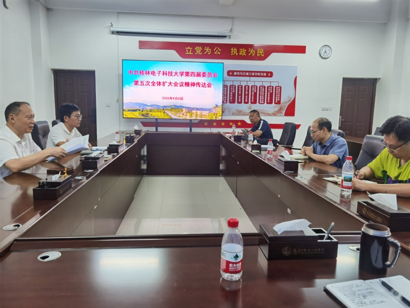 2025年9月5日下午,我院在花江校区建交大楼412会议室召开中共桂林电子科技大学第四届委员会第五次全体(扩大)会议精神传达会,会议由院党委书记黄金标主持,全体院领导参加。