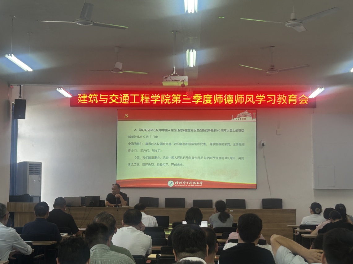 9月19日下午,我院在建交大楼401会议室召开2025年第三季度师德师风学习教育会,学院全体教职工参会,会议由党委书记黄金标主持。