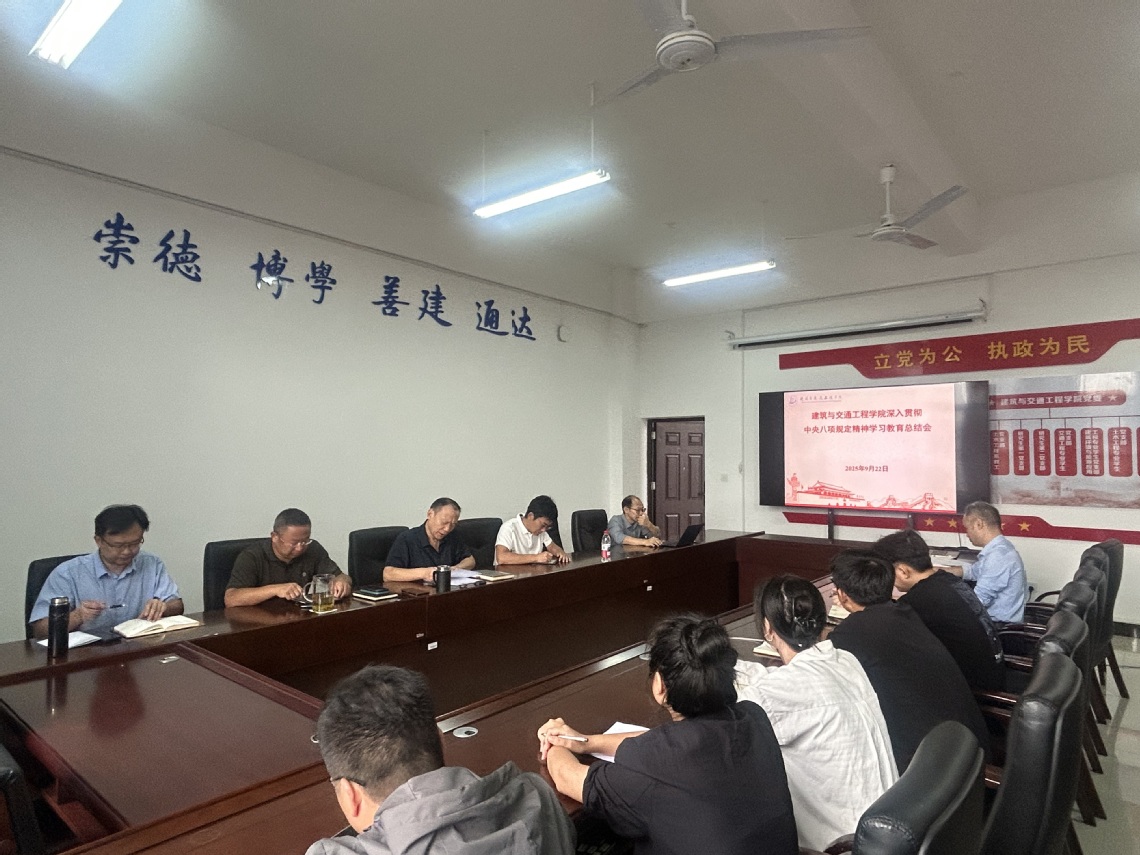 9月22日,我院在建交大楼412会议室召开深入贯彻中央八项规定精神学习教育总结会。学院领导班子成员、各支部书记参加了会议,会议由党委书记黄金标主持。
