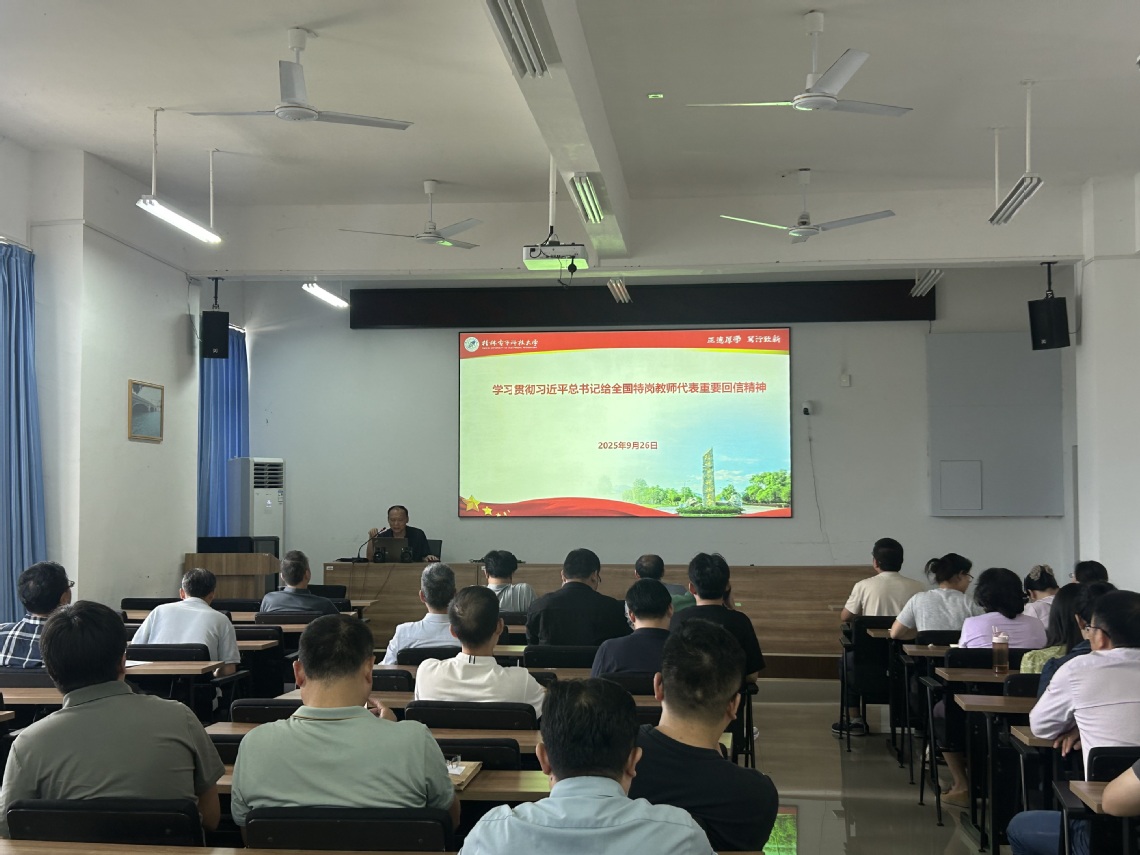 9月26日,我院在建交大楼401会议室召开专题会议,深入学习贯彻习近平总书记给全国特岗教师代表的重要回信精神,会议由黄金标主持。