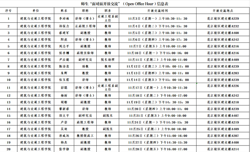建筑与交通工程学院“师生面对面开放交流”活动安排表(2025年11月)