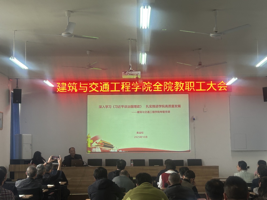 10月31日,我院在建交大楼401室举办以“深入学习《习近平谈治国理政》 扎实推进学院高质量发展”为主题的党课,学院党委书记黄金标主讲,全体教工党员参会。