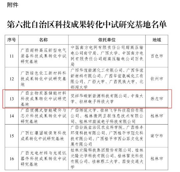 我院共建“广西生物炭基储能材料科技成果转化中试研究基地”成功获批