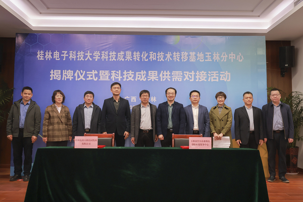 12月10日,我校在玉林市开展桂林电子科技大学科技成果转化和技术转移基地玉林分中心揭牌仪式暨科技成果供需对接活动。玉林市委常委、副市长张海鹏,我校副校长刘建明,产学研合作处、机电工程学院、计算机与信息安全学院、材料科学与工程学院、人工智能学院等单位相关人员参加活动。