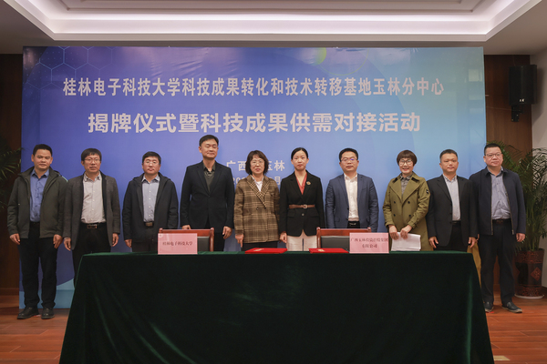 会上,张海鹏介绍了玉林市产业布局、经济发展状况、营商环境等,并表示对桂电与玉林市企业加强合作予以支持。刘建明介绍了我校学科、人才、科研、平台等建设情况,并感谢玉林市对我校长期以来的支持。产学研合作处相关负责人重点推介了我校在高端装备制造、集成电路、信息通信、网络信息安全、新能源新材料、医疗器械等领域重大科技成果。随后,双方共同为桂林电子科技大学科技成果转化和技术转移基地玉林分中心揭牌。我校与广西玉林投资控股集团有限公司,桂林电科大科技园发展有限公司与玉林市中小企业科技创新孵化服务中心分别签订合作协议。