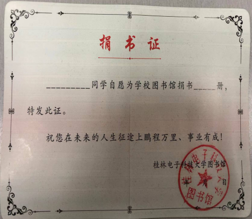 2、邮寄捐赠:广西桂林电子科技大学花江校区图书馆 邮编:541004