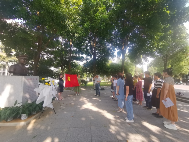 9月26日下午,图书馆党总支根据党员集中培训课程安排,全体党员来到杨科璋雕像广场开展主题为“缅怀英雄先烈,传承红色精神”现场教学活动,党总支书记宋江飞主持现场教学活动,党总支副书记、馆长刘庆华参加本次活动。