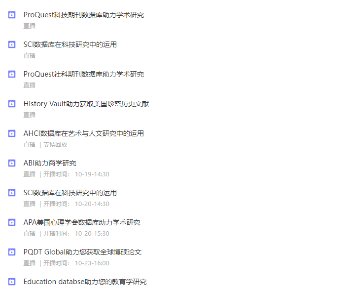 为了使读者能够更好地利用外文电子资源,图书馆推出了“科睿唯安在线学院——数据库使用公开课”。系列课程涉及数据库包括:Web of Science(SCI,SSCI,AHCI),JCR,ProQuest系列产品(含PQDT,Eook Central,ProQuest综合、科技、商学、教育、心理、医学、生物、农学、艺术等期刊库,ProQuest历史文档类数据库等)。