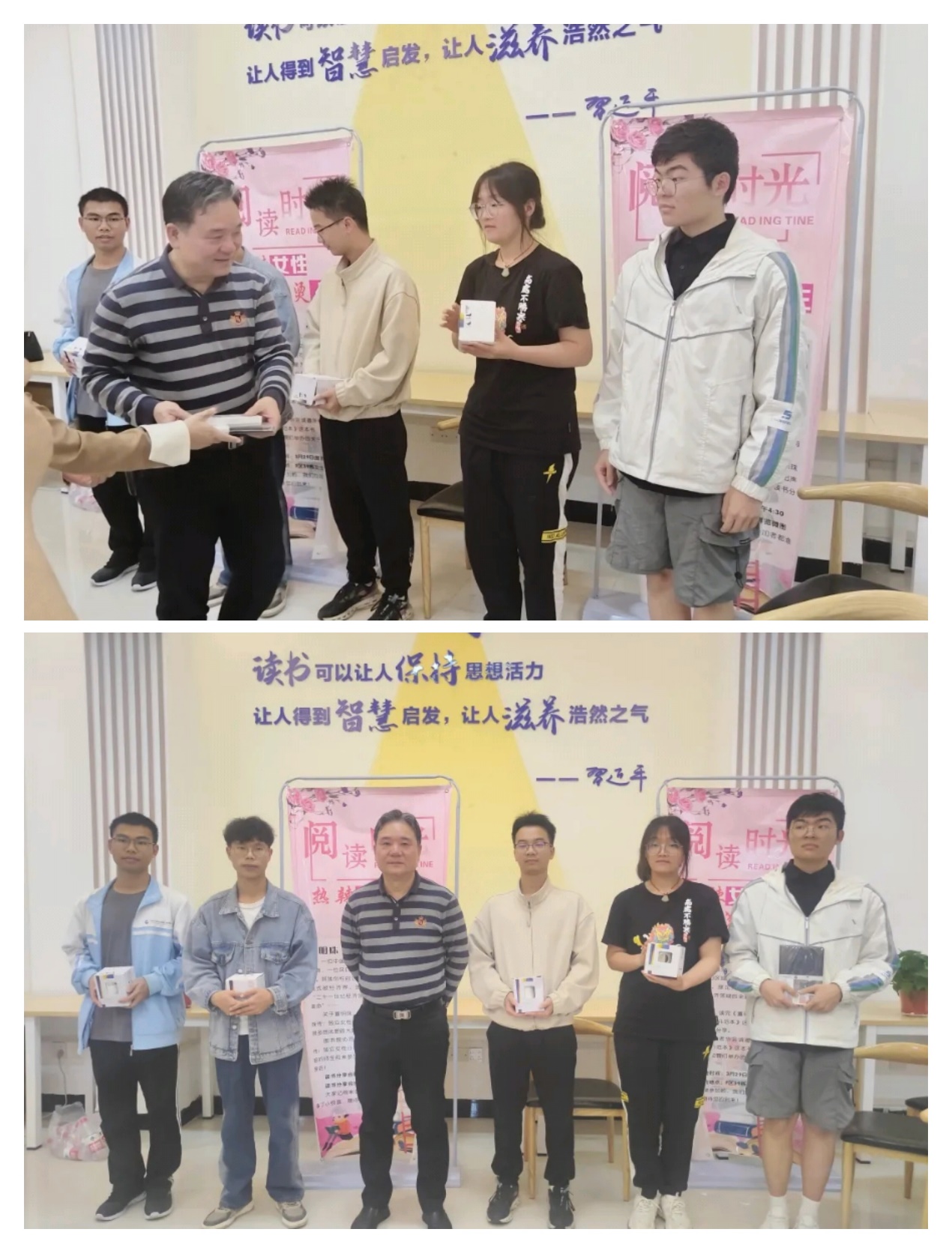 在活动的结尾,图书馆党总支书记宋江飞为积极分享读书体会、踊跃发表个人观点的同学颁发了奖品。