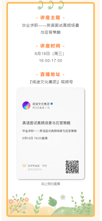 讲座预告 | 英语面试高频场景策略讲座,毕业季刚需干货!