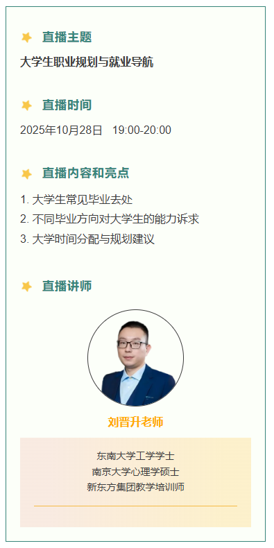 新东方多媒体学习库特别推出 “大学生职业规划与就业导航” 线上主题讲座,就让我们一同探索如何搭建清晰的职业发展框架,掌握高效适配的求职就业技巧。