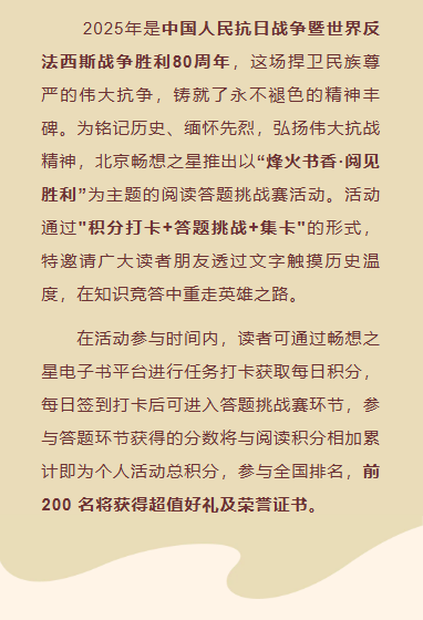 “烽火书香·阅见胜利”线上有奖阅读活动开始啦!
