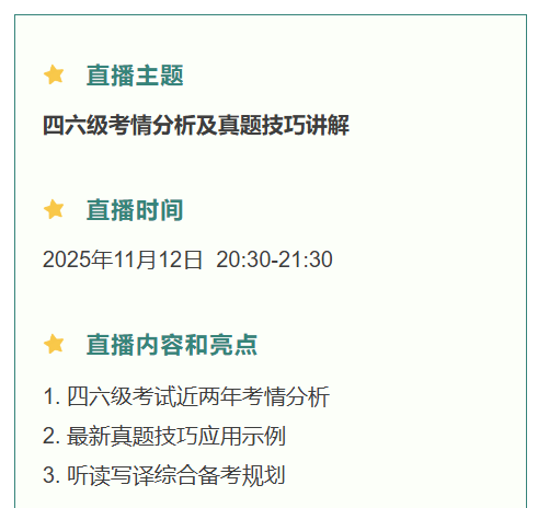 新东方直播预告丨四六级考情分析及真题技巧讲解