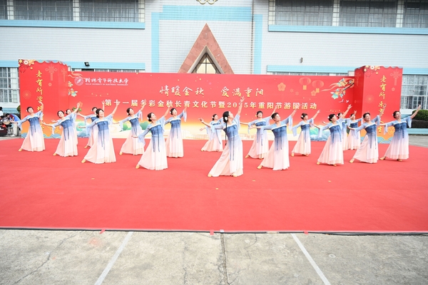 活动期间,校领导及校友代表向离退休教职工代表发放祝福小礼品和奖品。活动设置了抽奖环节,现场抽取了100名幸运奖。在文艺表演环节,长青学院乐队的老师们身着民族盛装率先登场,在不同器乐交织的旋律中,一曲《美丽神奇的地方》歌声如清泉流淌,仿佛将听众带至山水相依的秘境;随后,长青学院老师们化身舞者演绎《茉莉花》,水袖轻扬、步履翩跹,留下满台清雅;桂电幼儿园的孩子们蹦跳着带来串烧表演《敬最亲的人》,童声稚语配合可爱的动作,向老同志献上最真挚的节日祝福;桂电附属学校学子们的朗诵《揽秋意,话重阳》,话语铿锵有力,以青春之声传递情暖重阳;校团委呈现的歌伴舞《灯火里的中国》将全场氛围推向高潮,歌声与舞姿完美相融,将家国情怀化作具象的表演,博得了阵阵掌声。表演结束后,老同志们兴致勃勃地参与到套圈、夹乒乓球、投飞镖等游园项目中,现场一片热闹祥和的气氛。活动现场还展出了老同志们的摄影、书画、诗词作品等。