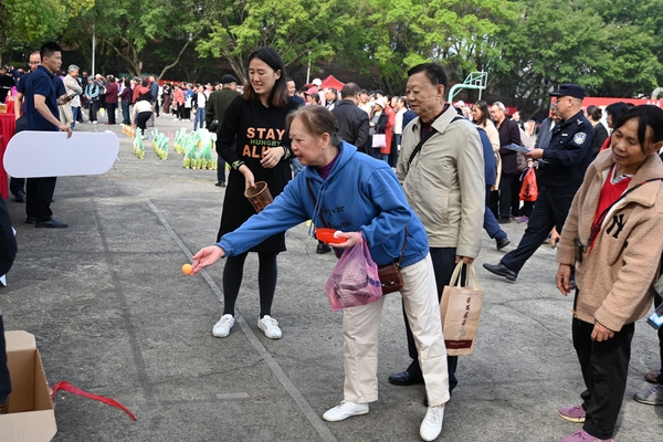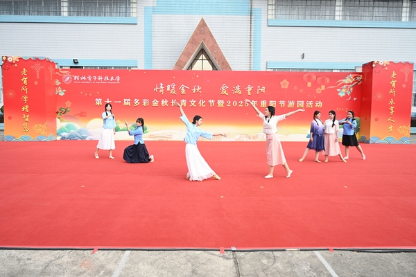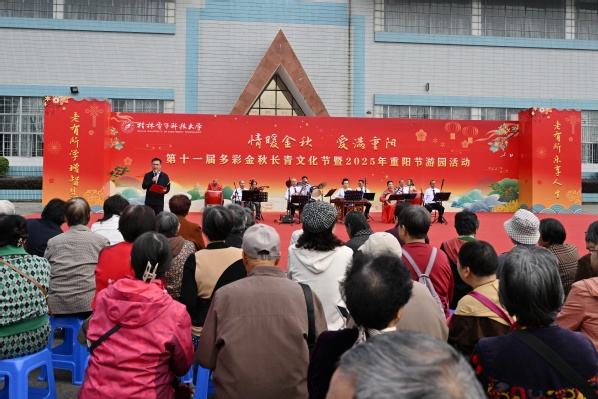 10月29日,我校第十一届多彩金秋长青文化节暨2025年重阳节游园活动在金鸡岭校区体育馆南侧篮球场举行。校党委书记徐华蕊、副校长陈松青;桂林校友会会长石坚,执行会长周伟、王庆祥、秦飞,秘书长张旭蓝,副会长韦仁攀、黄军强、赵琦;我校相关职能部门、教学单位负责人,离退休老同志以及桂林校友会校友代表参加活动。陈松青主持活动。