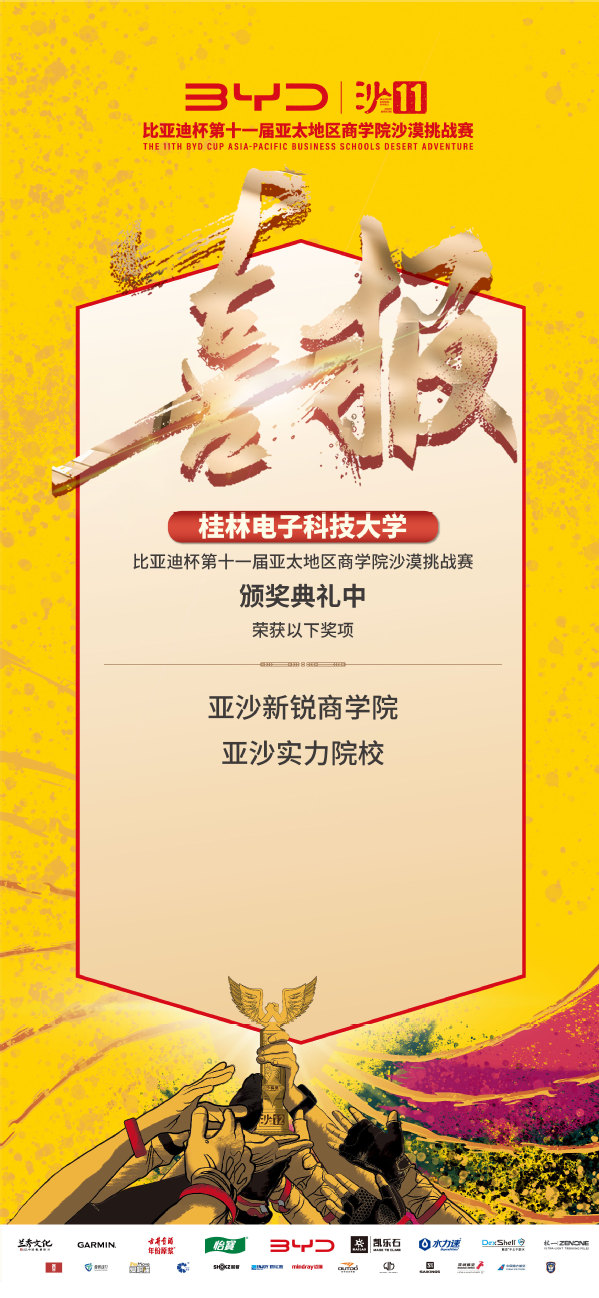 在颁奖仪式上,我校沙11领队徐建平获“商学院意见领袖”奖;我校荣获“亚沙新锐商学院”奖和“亚沙实力院校奖”。
