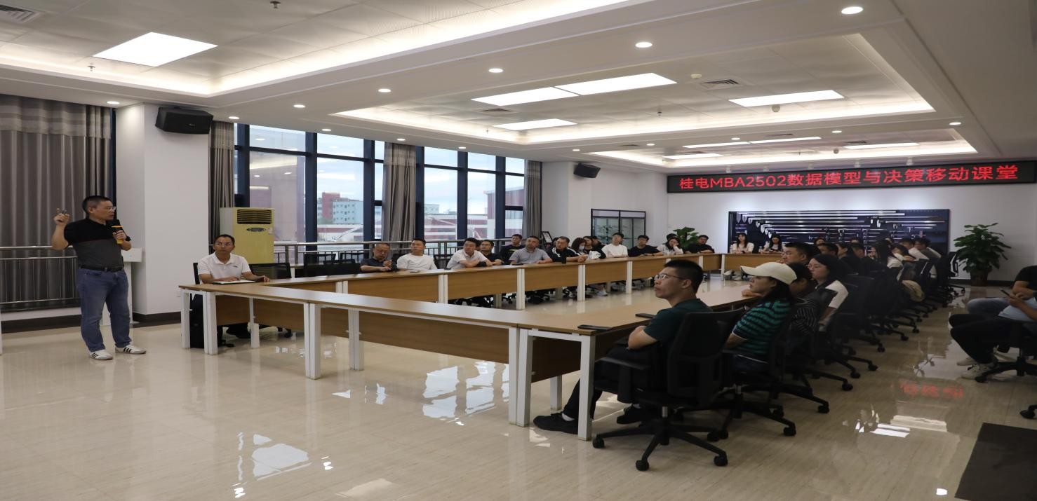 2025 年 9 月 24 日,桂林电子科技大学 MBA202502 班全体同学,在 “数据模型与决策”课程授课教师吴振华的带领下,赴桂林广陆数字测控有限公司开展移动课堂活动。此次活动以 “理论锚定实践,数据驱动决策” 为核心,将课堂上的数据分析、模型构建知识与企业数字化改革实景深度融合,既强化了课程理论的实践应用,更让同学们直观感受了制造业企业以数字化重塑核心竞争力的生动实践。