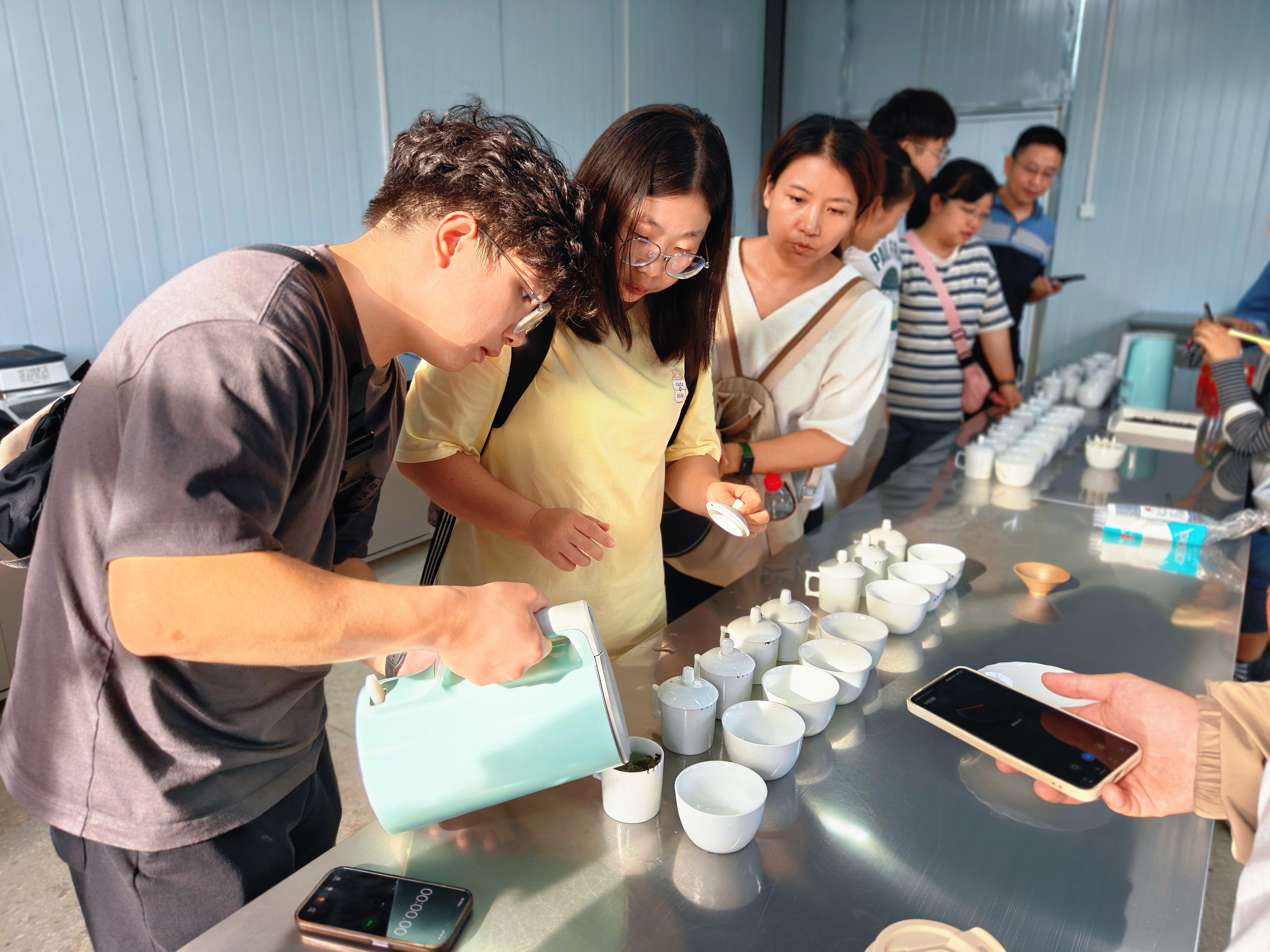 随后的体验环节中,同学们亲手参与茶艺冲泡,学习点茶技艺,在茶香氤氲中感受中华茶文化的博大精深。茶科所茶艺师现场演示了传统与现代相结合的茶艺技法,同学们通过实际操作,深刻体会到茶文化在当代的传承与创新。茶科所专家还向师生们介绍了茶叶科技创新的最新成果,包括清洁化加工技术、生态茶园建设等前沿领域。通过这些介绍,同学们了解到科技如何提升茶叶品质、提高产业效益,以及科技人才在推动茶产业转型升级中的关键作用。在专家的讲解中,学生们还了解到茶科所近年来在“广西六堡茶清洁化加工技术”和“生态茶园建设与管理技术”方面取得的重要突破,这些技术已成为广西农业主推技术。