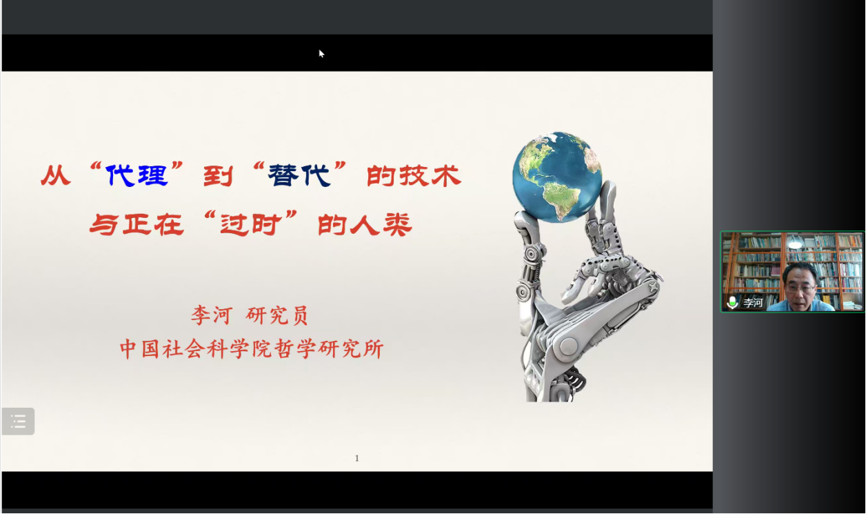 2022年11月25日下午,马克思主义基本原理系2022年学术讲座第四讲(“‘花江新马’大讲堂”——马克思主义理论学科建设暨热点问题百位学者系列论坛第八讲)开讲了,中国社会科学院李河教授作为本次受邀专家在线上做了题为“从‘代理’到‘替代’的技术与正在‘过时’的人类?”的讲座,讲座由副院长王占锋教授主持,马克思主义基本原理系全体教师、马克思主义学院研究生等100余人参加了讲座和研讨。
