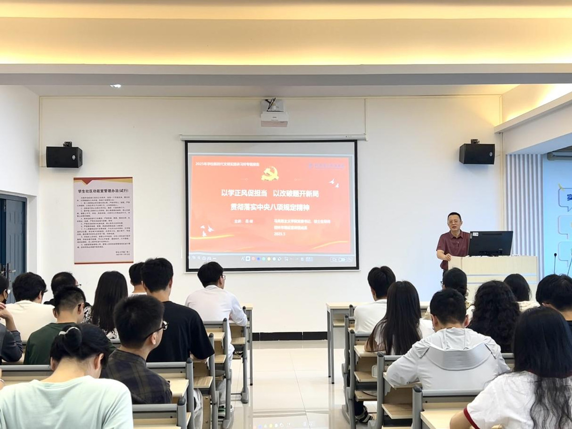 5月20日上午,我院于溶苑39栋103室顺利开展“以学正风促担当 以改破题开新局”主题党课活动。由学院党委书记岳峰主讲,马克思主义学院全体党员及入党积极分子踊跃参与。