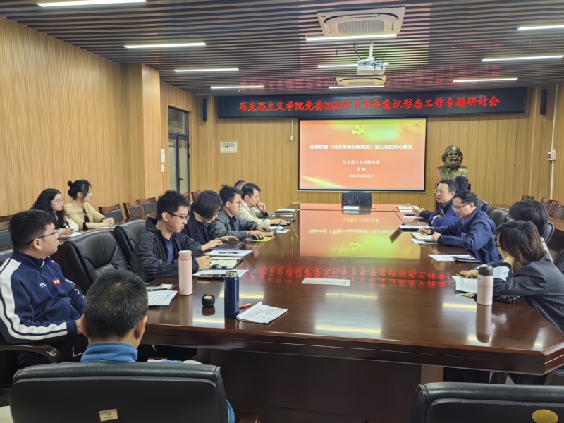 会上,学院党委书记岳峰对下半年学院意识形态工作进行梳理。一是按照校党委的部署,扎实做好《习近平谈治国理政》第五卷的校内理论宣讲工作,必须始终坚持正确政治导向,确保理论阐释的准确性、权威性。二是扎实推进党的二十届四中全会精神融入思政课教学,巩固课堂主渠道作用,增强思政课的思想性、理论性和亲和力。三是推动党的二十届四中全会精神与《习近平谈治国理政》第五卷的核心要义融入科研工作,加强学术研究中的意识形态风险防控。四是对照年初的意识形态工作计划与学校年终考核指标,在一周内全面梳理2025年未完成事项,明确责任分工与时间节点,确保全部落实到位。