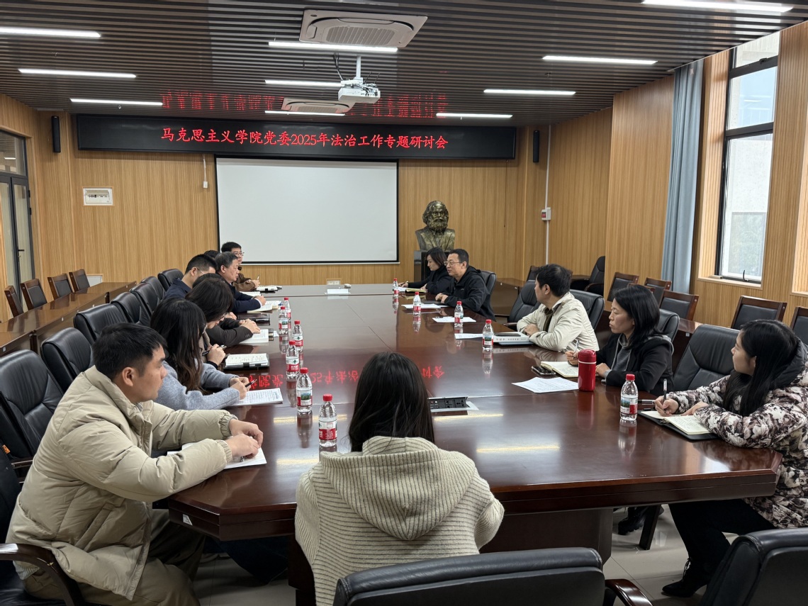 12月3日上午,我院党委在文科综合楼211室召开了2025年法治工作专题研讨会。学院党委书记岳峰主持会议,学院党委委员、各党支部书记与会。