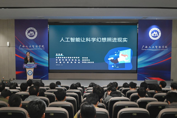 11月20日,2025年全国科普创作大会——专家走进广西人工智能学院活动顺利开展,中国科学院计算技术研究所研究员王元卓应邀来学院开展“人工智能让科学幻想照进现实”专题讲座。广西人工智能学院院长、桂电南宁研究院院长杨巨成,副院长朱晓姝等参加。