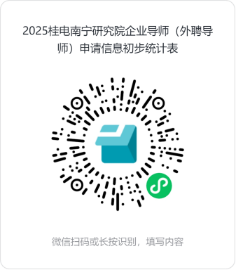 个人申请:请申请人扫描公告下方二维码填写并提交《2025桂电南宁研究院企业导师(外聘导师)申请信息初步统计表》;