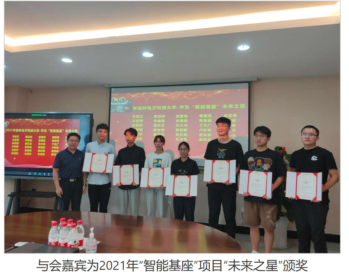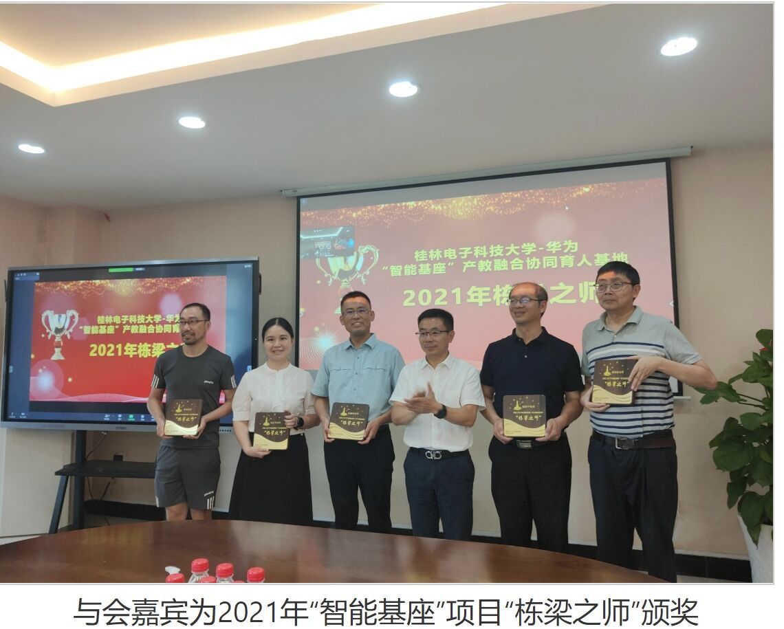 近期,桂林电子科技大学-华为技术有限公司“智能基座”项目对标交流会在我校线上召开。会上,颁发了2021年“智能基座”项目的“未来之星”“栋梁之师”“鲲鹏众智计划2021——金质量奖”,我院吴劲松教授获评“栋梁之师”荣誉称号,韦泓江等12名学生获评“未来之星”荣誉称号。
