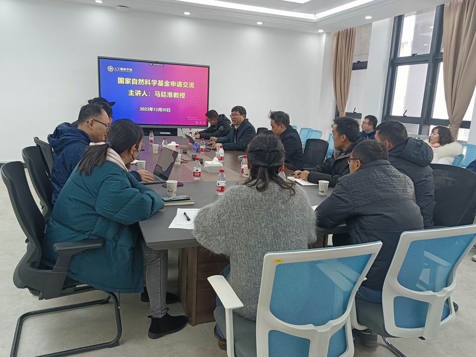 为切实做好学院2024年度国家级基金项目申报工作,提高基金申报书的质量,2023年12月20日上午人工智能学院在花江慧谷6号楼403会议室举办2024年度国家自然科学基金申报经验交流会。江苏海洋大学副校长马廷淮教授应邀作国基申报经验交流分享。会议由院长陈光喜教授主持,我院和计算机与信息安全学院20多位教师参加了此次交流会。